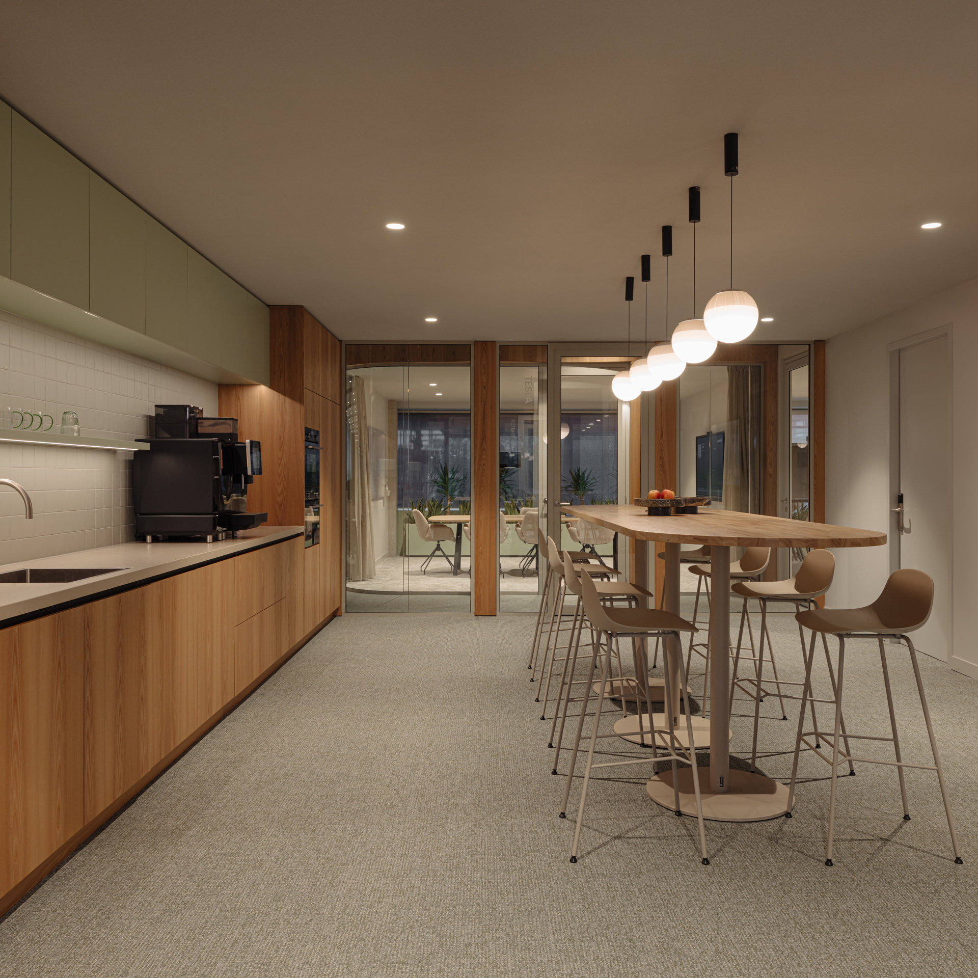 The design reflects Greenflux’s core values; innovation, sustainability, and progress, while simultaneously providing a warm and welcoming work environment where employees feel comfortable, connected, and part of a community. The office is conceived as a place where collaboration, interaction, and focused work naturally come together.