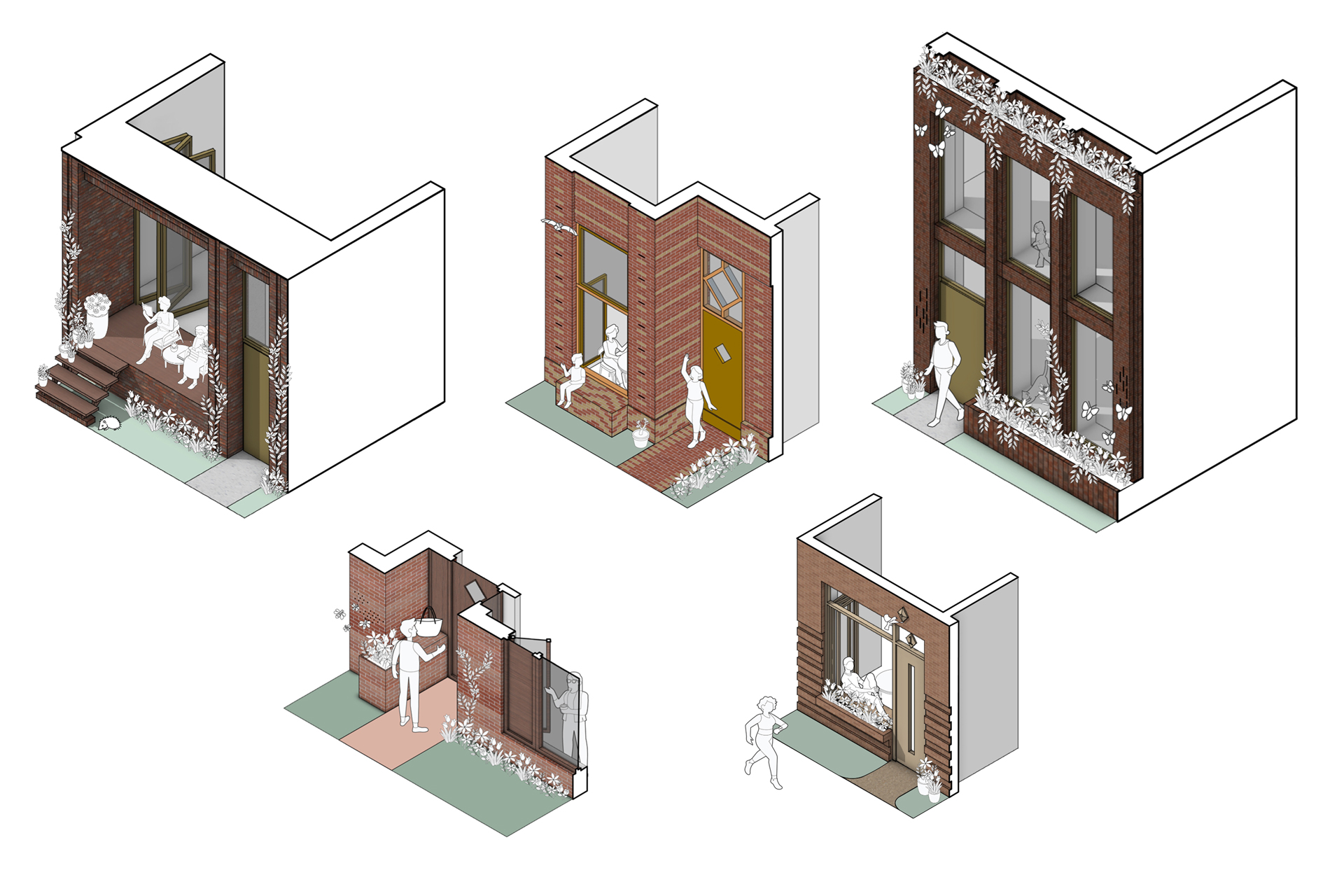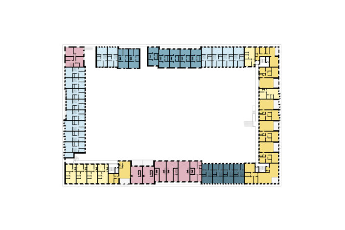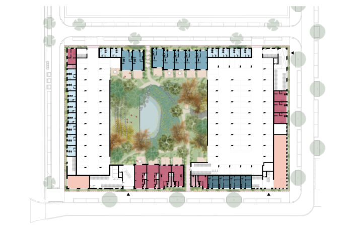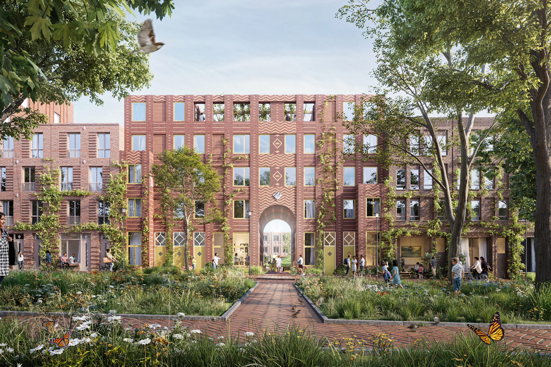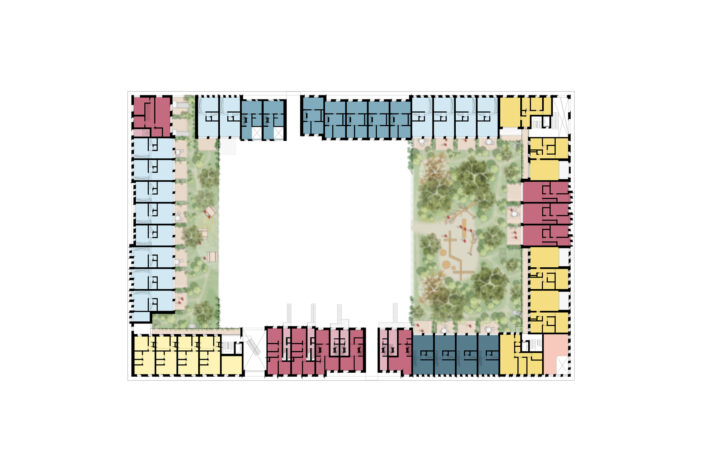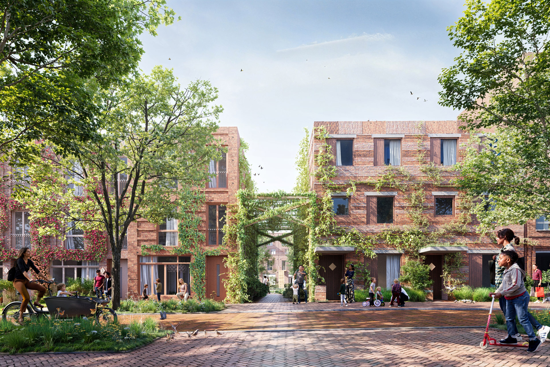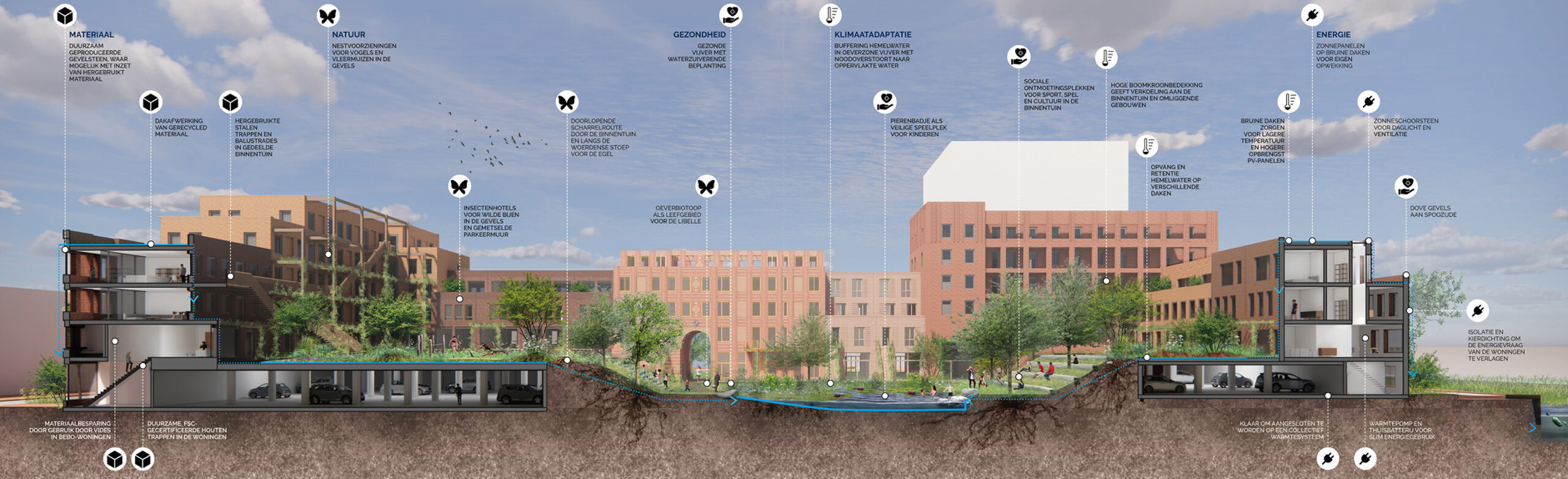 Connection is at the heart of Reyp: residents encounter each other daily, forming a welcoming community with ample opportunity for spontaneous encounters. This connection is evident in the design, embodied by the strong connection between indoors and outdoors: from the street towards the courtyard, but also in the smooth transitions between private and public spaces. The courtyard is designed for gatherings, for example, during sports, picnics, or playtime. Furthermore, we actively seek connections with the unique qualities of Woerden itself, collaborating with local businesses.